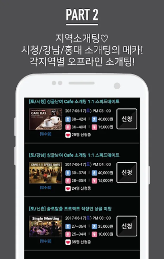 - 멋지고 아름다운 연애를 꿈꾸는 솔로 남여들의 오프라인 미팅 만남 소개팅 어플-
