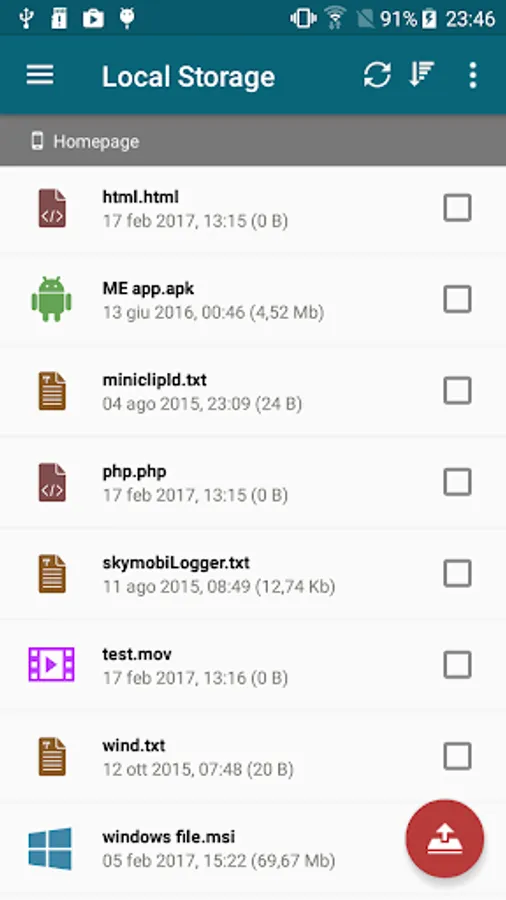 • Sort your local storage by Name, Size, Last modified, Type