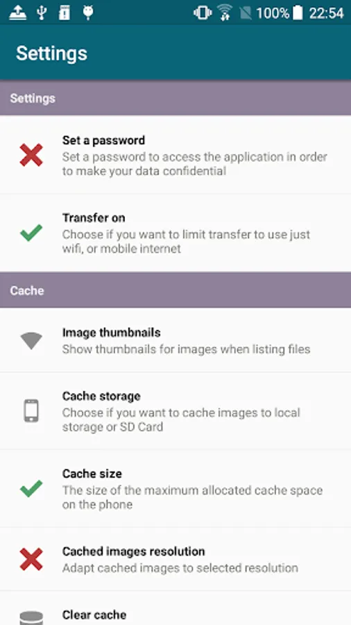 • Choose cache size limit and location (Local Storage or External SD Card)