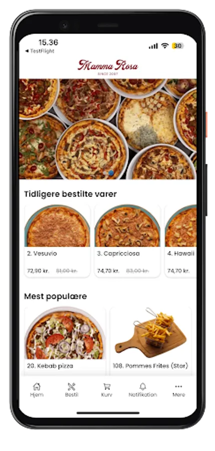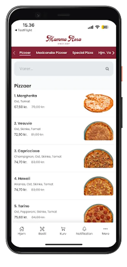 Mamma Rosa in Elsinore, we have a choice of different dishes, from both home and abroad. Among other things: Pizza, Pasta, Burger, Kebab, Salad, Children's menu, Nachos, Mexican pizza, Kebab tray, House burger, Homemade hot pizza sandwich m.m. See our full menu, and call and order takeaway, then the food is ready when you arrive. We offer delivery from DKK 35. You can also come and enjoy your food here with us, we have a cozy room, and 32 seats. Breakfast offer from kl. 11 - 15.