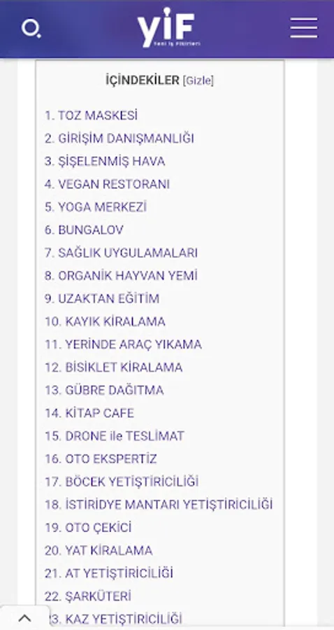New Business Ideas and Entrepreneurship application; And Turkey to investigate the potential of the newest and highly profitable business ideas from around the world, research is intended to make reporting and recommendations. All the ideas in the platform are prepared by experts in the field; unique support is provided to entrepreneurs and investors with their opinions and suggestions.