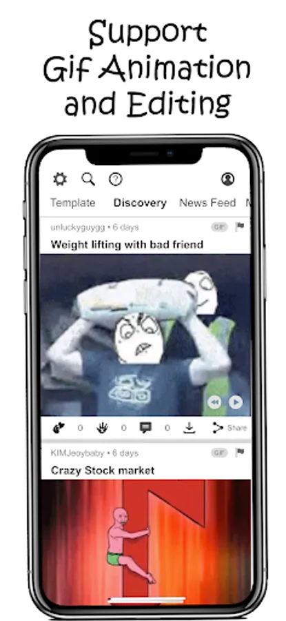 5) Animated GIF support. Not only support to play GIF meme but also you can upload and edit your gif image such as adding different caption texts during different time period.