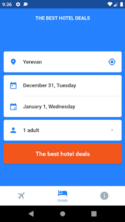 You trying to search cheap hotels? This app not only search air tickets, already we search more than 1,000,000 hotels around the world. Also you can find motels and apartaments and last minute hotels. Simple search for the cheap hotels, cheap motels and the luxury last minute hotels deals.