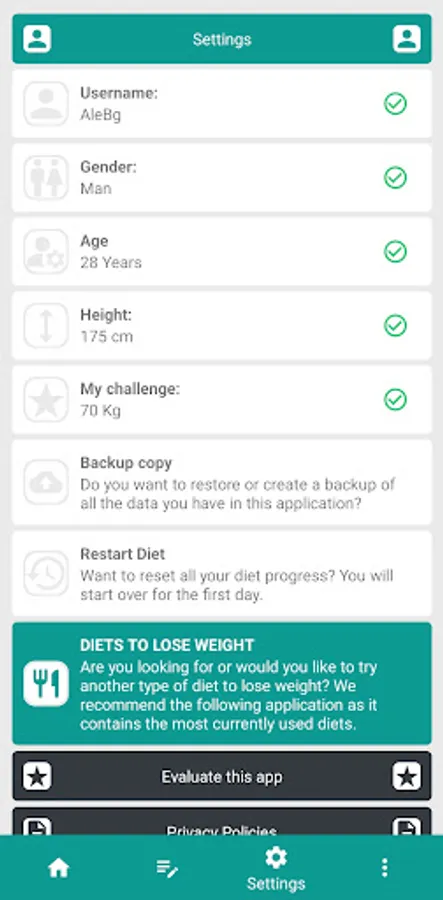 This app can be used by anyone since its use is very simple. You only have to configure the number of days and a personalized plan will be generated for each day. If you don't like the suggested food you can change it to your liking.