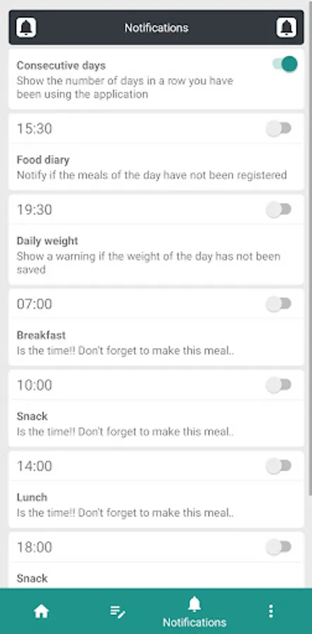 鉁旓笍 Notifications: Are you a clueless person and want to generate notifications? This section will help you generate personalized notifications for all the meal times you have during the day. You can completely modify it to your liking.