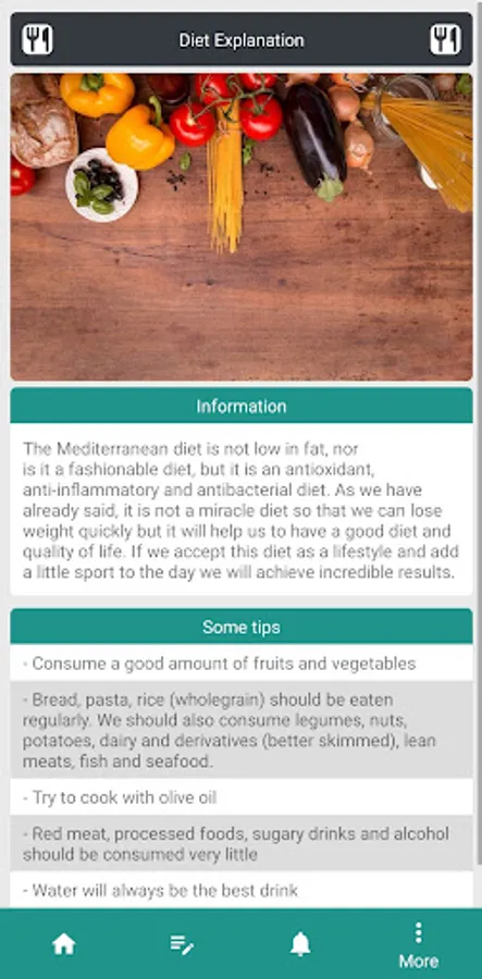 馃憠 This application presents you with one of the best diets to lose weight fast with a personalized eating plan. This app is perfect for novices or beginners and is valid for men and women. It is correctly translated into English and is completely free (You do not have to pay anything to get your personalized diet). The Mediterranean diet is a type of food that is based on the traditional cuisines of the countries that are next to the Mediterranean Sea. Plant foods, such as whole grains, vegetables, legumes, fruits, nuts, seeds, herbs, and spices, are the foundation of a Mediterranean diet. Olive oil is the main source of fat in this type of meal plan. Thanks to these diets to lose weight you will be able to lose weight in a healthy way and obviously, you will be able to have a healthier life.