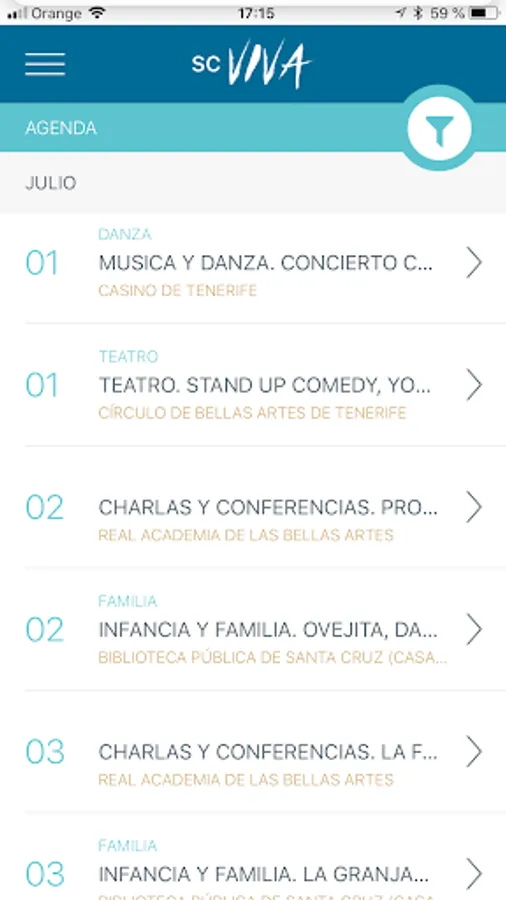 SC Viva is a mobile application that tells you the offer of culture and leisure in Santa Cruz de Tenerife.