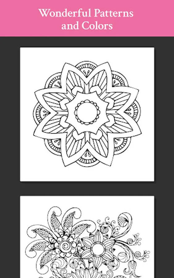 The best free anti-stress coloring therapy pages for adults on your android! Enjoy a great variety of coloring pages of animals and birds, butterflies and flowers, people and places, mandala and patterns that would be very relaxing during the new year!