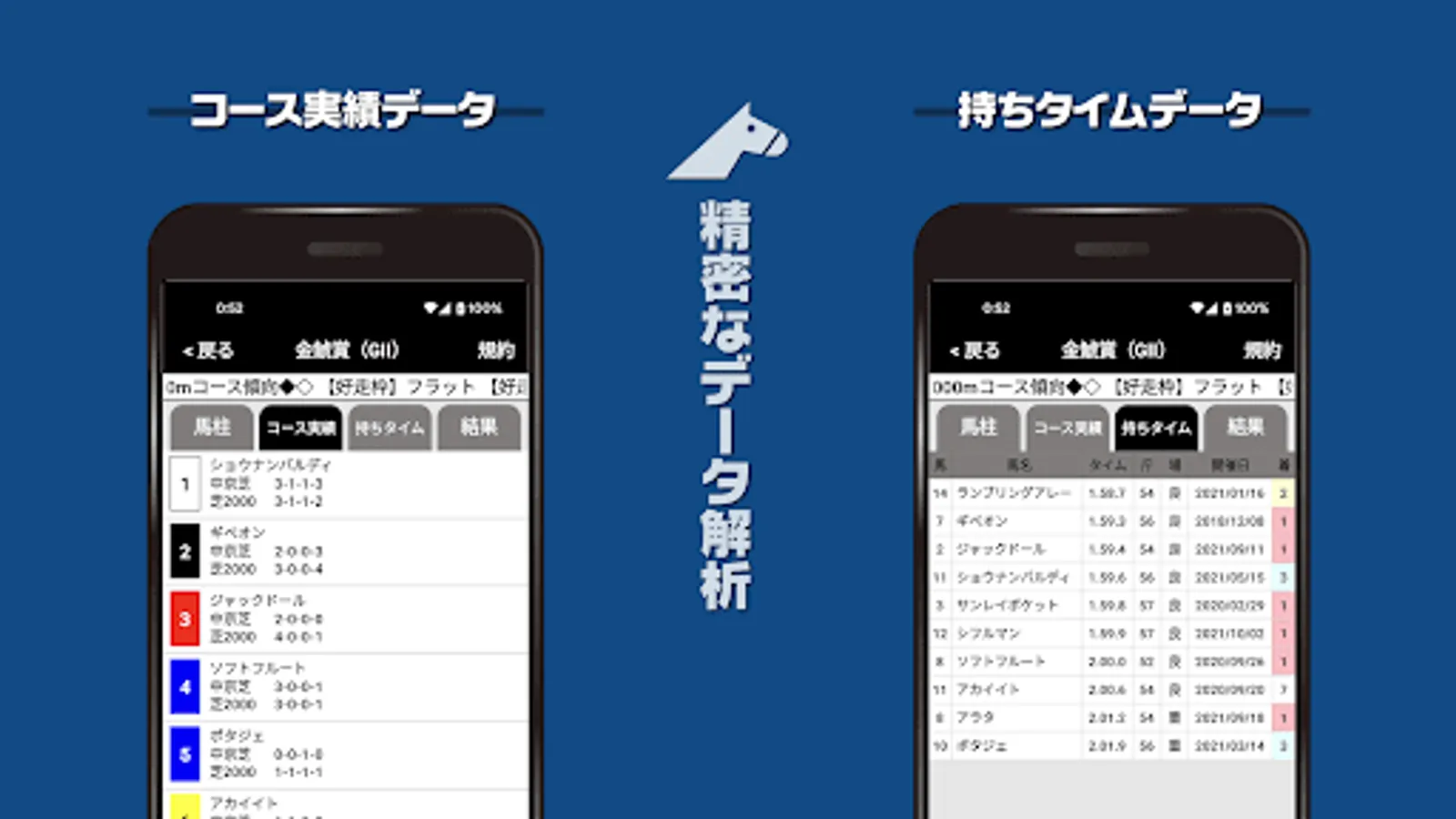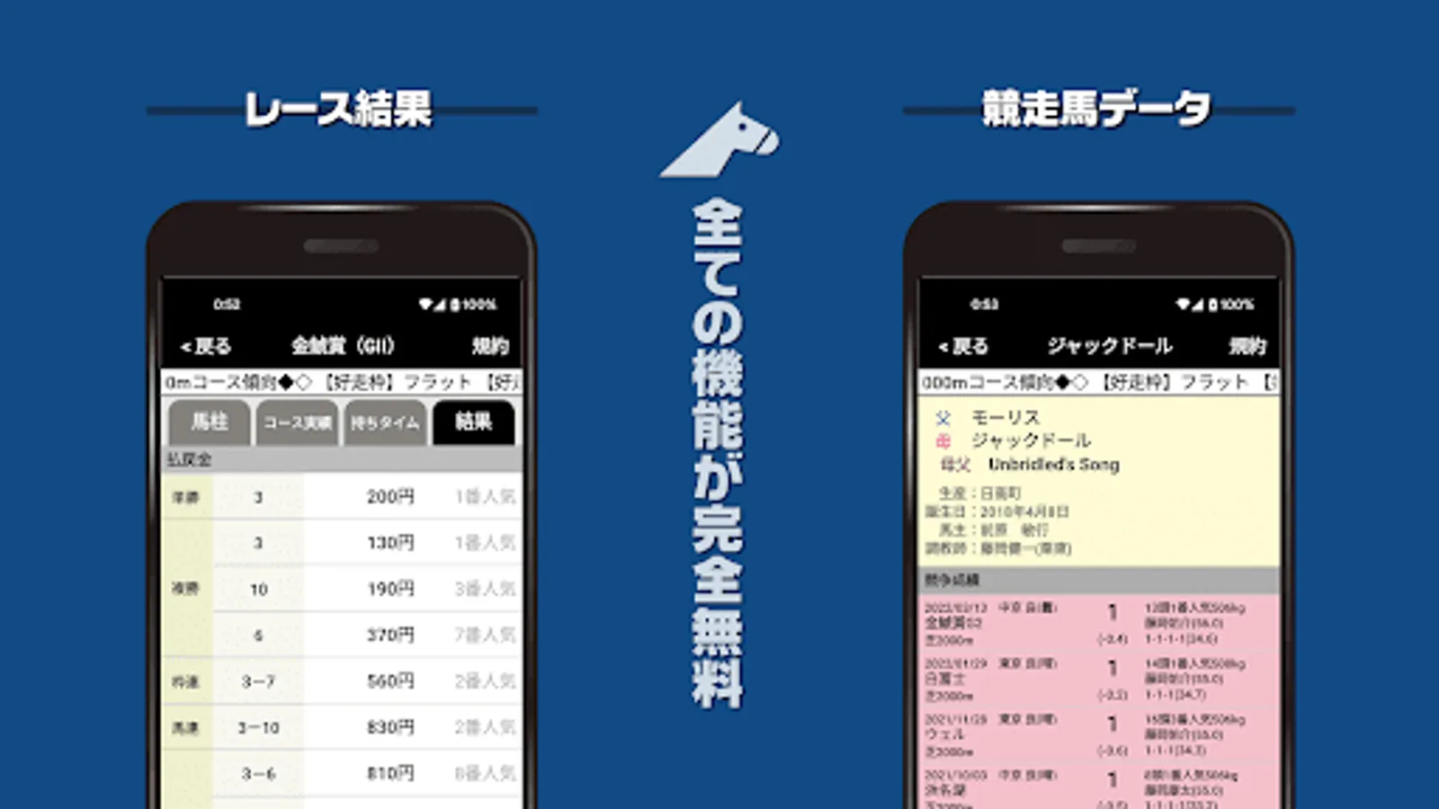 You can see detailed information on racehorses such as past race results and pedigree.