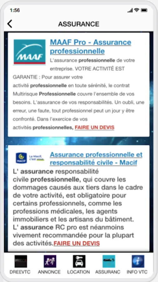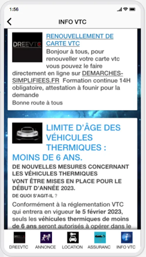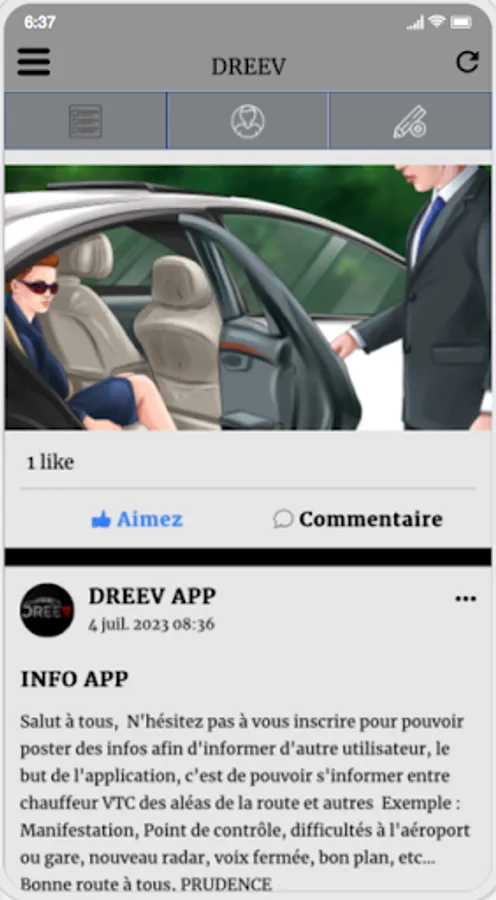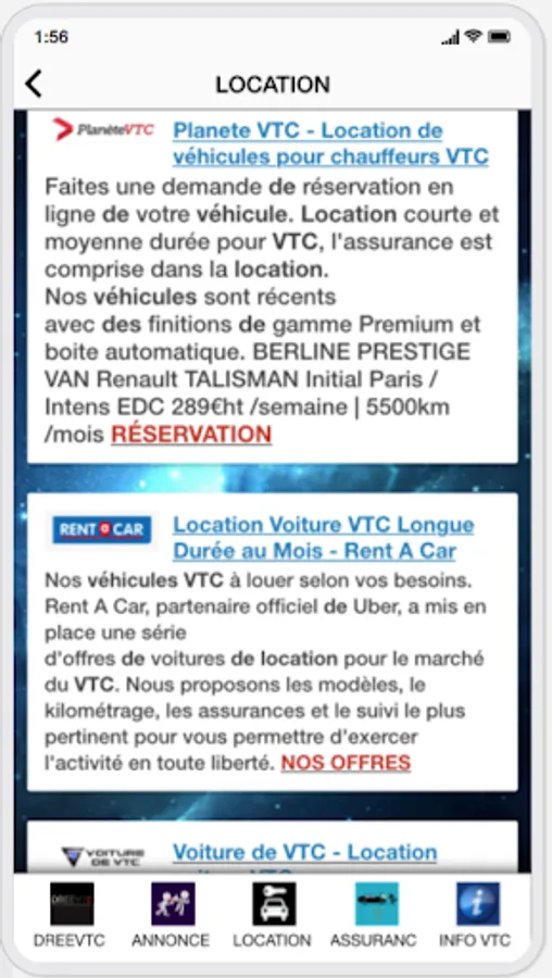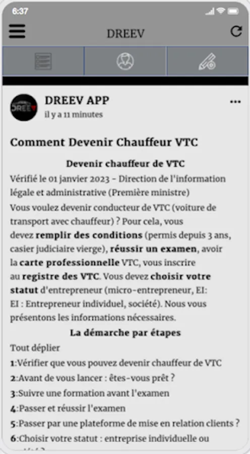 DREEV, The application that brings together all your VTC information in France, Place an ad on the application, Sharing information between VTC, Find your vehicle rental companies, Your trainers and Your insurers in the same place without difficulty.
