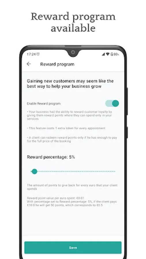 — Marketing: The loyalty Program is as simple as it gets, everything you need to stay busy and increase loyalty, reward your clients with points (cash-back) to use exclusively in your service.
