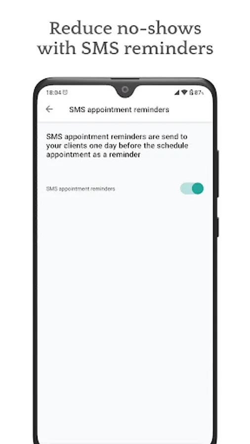— SMS Reminders: Protect your schedule by using the SMS reminder feature which sends an automated reminder SMS to your client a day before his scheduled appointment.