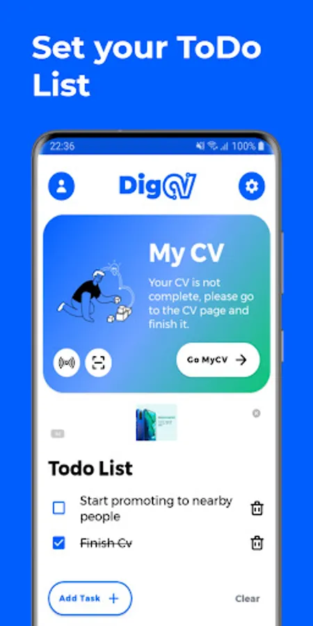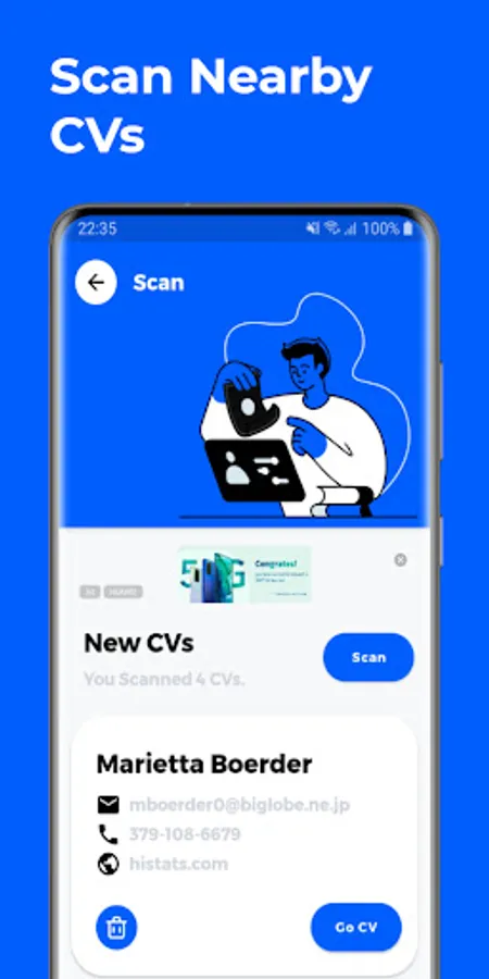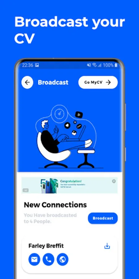 - Instant and permanent CV promotion to people around you no matter where you are!
