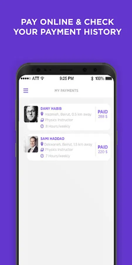 Place, time and payment of the scheduled courses are specified and validated through the App procedure.