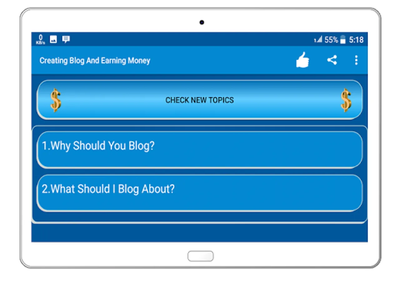 Start Blogging And Earn Money Guide app show only Step By Step Tutorial how to earn money from online blogging.