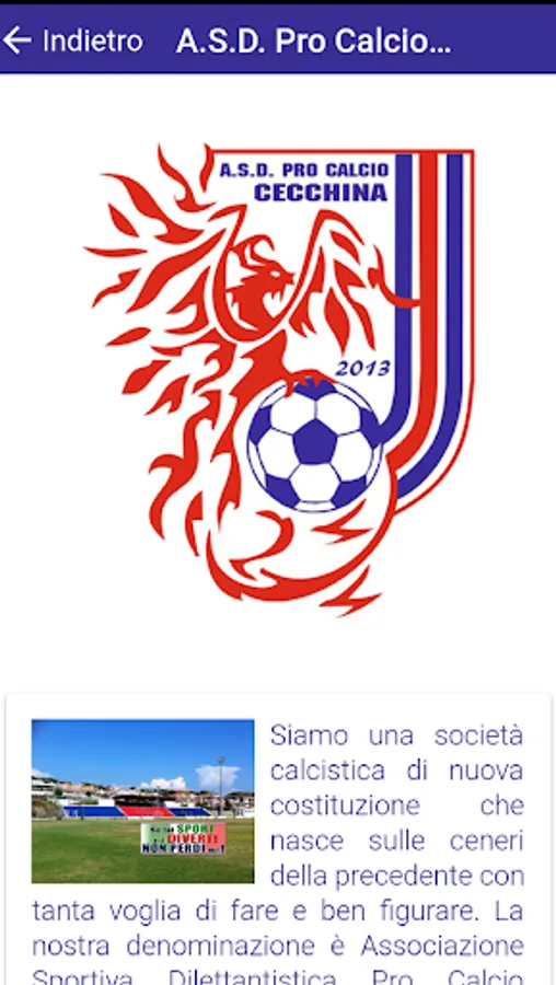 Welcome dell'A.S.D app. Procalcio Cecchina! We created our application to communicate directly with our members and all those who follow our league and our soccer teams. Inside the app you will find all the details about the Association, matches and events. You can also visit our website, our Facebook page and Youtube. By downloading our app you can load points on the new loyalty card every time you consume in our bar. Upon completion of the card you will receive a wonderful tribute.