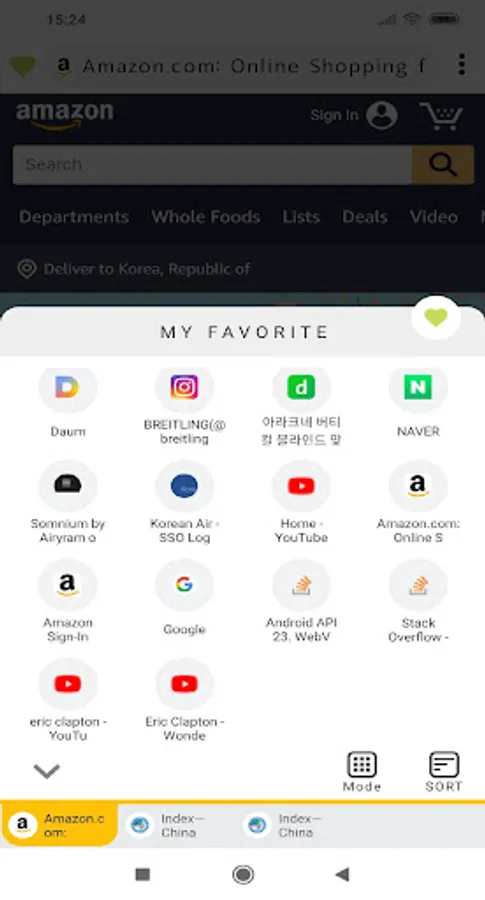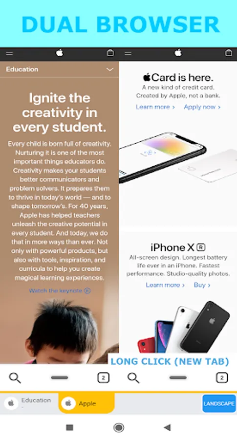 - Dual split tab page (If you long-click the tab button, the new tab screen is split into two screens.)