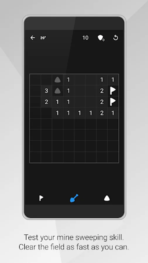 In a rectangular field filled with landmines, you are tasked to sweep all those buried mines without blowing up any. And the tool you have? A sleek phone equiped with Ara Mines, a sleek mine detector. Now, let's dig 'em, commander!