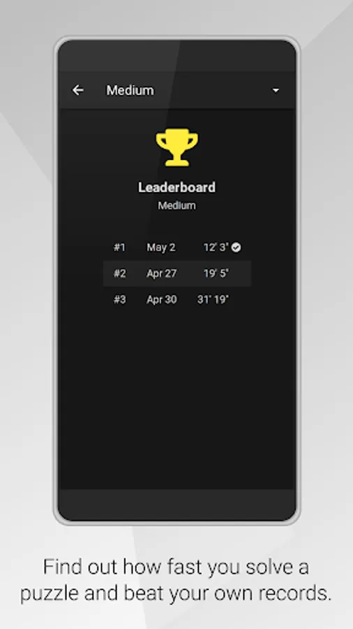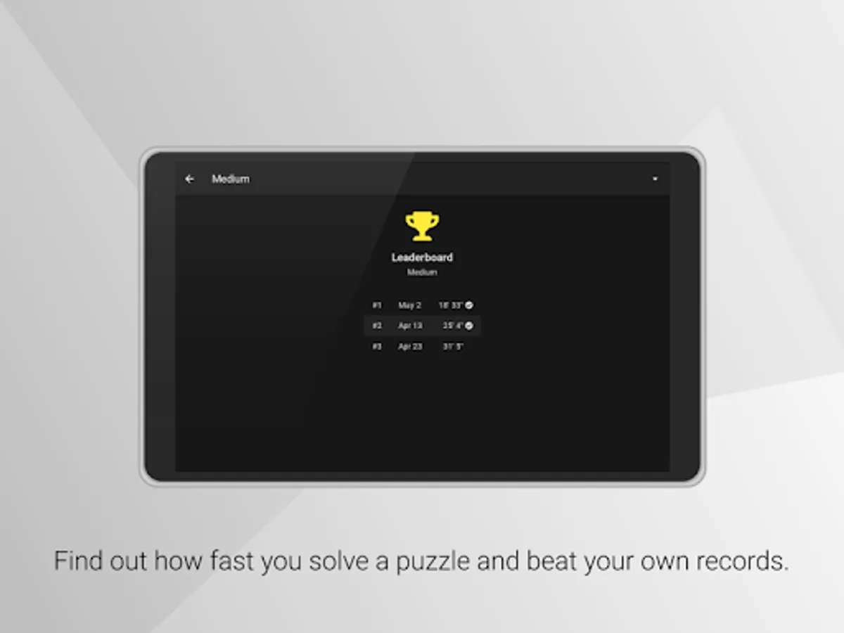 Keep track of how fast you solve a puzzle and beat your own records! The leaderboard captures your top 10 records of all time. For more challenge, earn a badge when you play without using any assistive features!