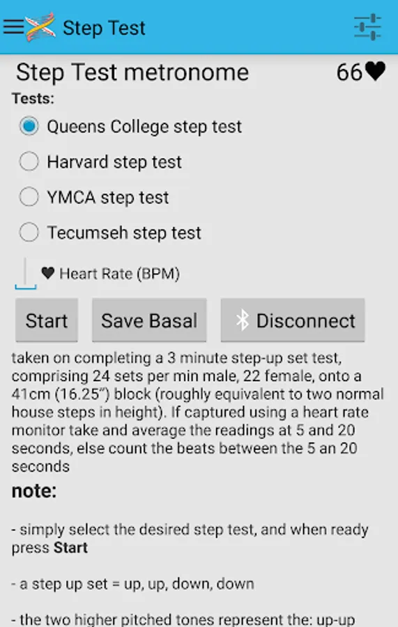 - Bluetooth - to allow the app to capture a heart rate on completing of one or more of the step tests [Only Bluetooth Smart (Low Energy) Heart Rate Monitors are currently supported].