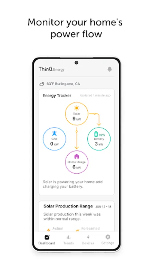 Link your home's LG energy system to see everything ThinQ Energy has to offer. If you haven’t yet installed an LG energy system, download ThinQ Energy to see a demo mode – no signup required.