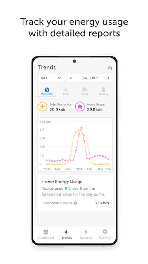 - Get detailed reports how you want: break down where your energy is coming from and where it’s going. See energy insights based on historical usage.