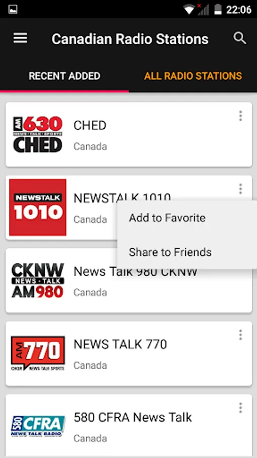 ✦ Save your favorite canadian radio stations