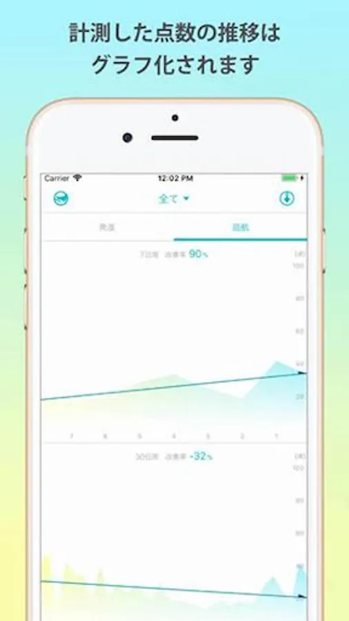 ・アプリ内「運行」タブでは、直近「7日」「30日」「90日」の点数をグラフ表示します。