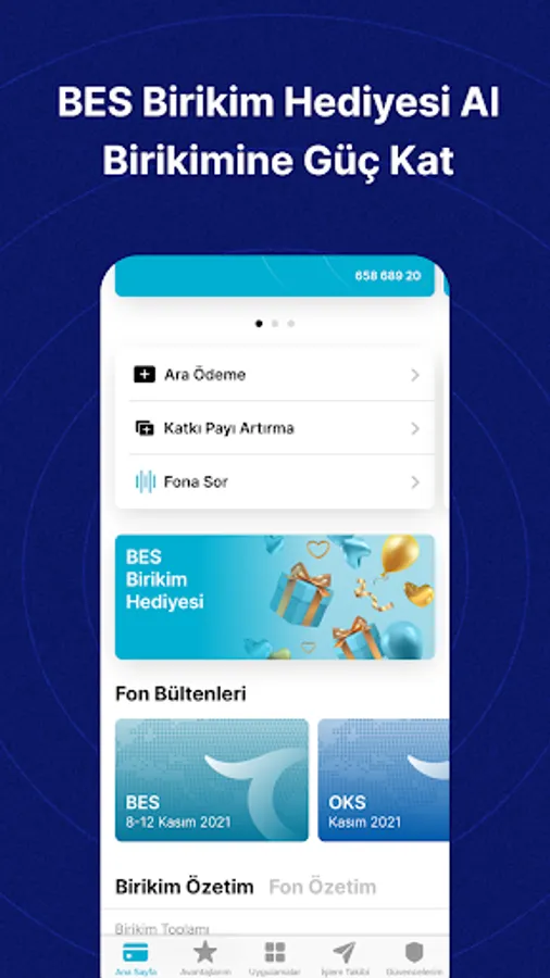 - You can track your fund changes, past/future maturity and interim payments, account activities related to your savings in your BES contract, and you can also send BES gifts to support the savings of anyone with a Türkiye Hayat Emeklilik contract.