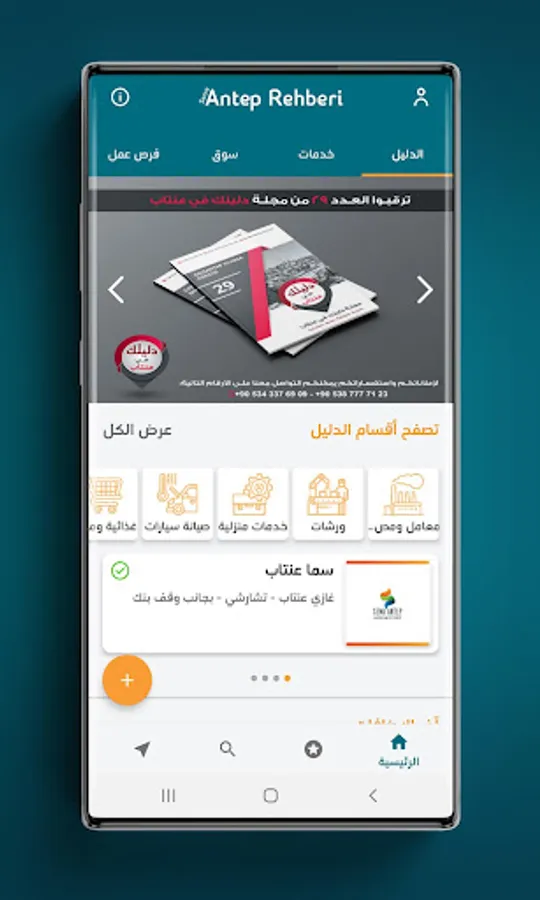The Sema Antep Rehberi Guide application provides free access to data on thousands of places and events in Gaziantep. Its users enjoy a number of other free features (view ads - services - products - offers). It also allows the possibility to add sites, places to the directory, classify and share with ease. The user can also search and access information quickly through the search tab, in addition to the ability to know nearby places and filter them as needed.