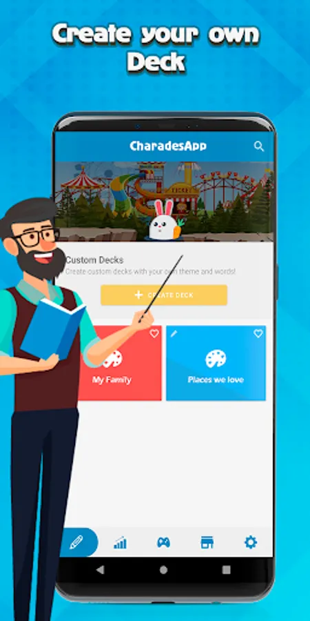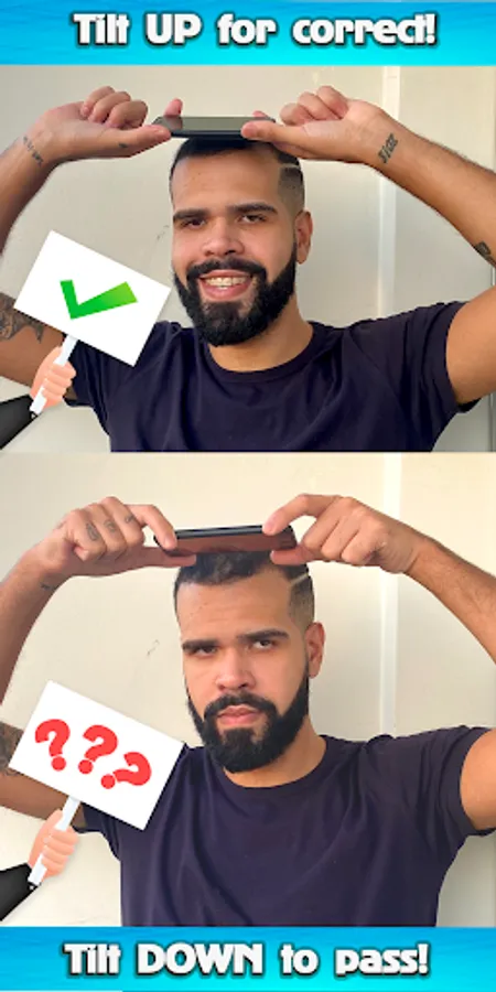 Choose a deck from over 60 charades available to play or create your own deck and play Heads Up as you wish! Place device on forehead e ask your friends to help you guess what is on your device! They can dance, sing, mimes or give you clues... Play whatever you want! Just tilting your phone up (correct) or down (pass) to continue. Easy, right? You just need to guess the word or phrase and guess what your are! It's so fun! 🤣