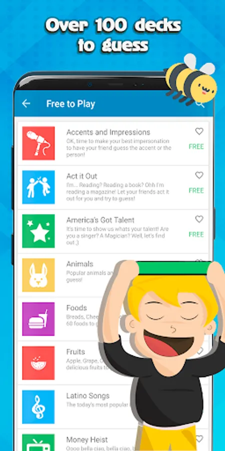 Play in your own way! Ask your friends to give you clues, dance, sing, do mimes and you should try to guess what is on your forehead! Just guess the word on the card that’s on your head from your friends’ clues before the timer runs out!