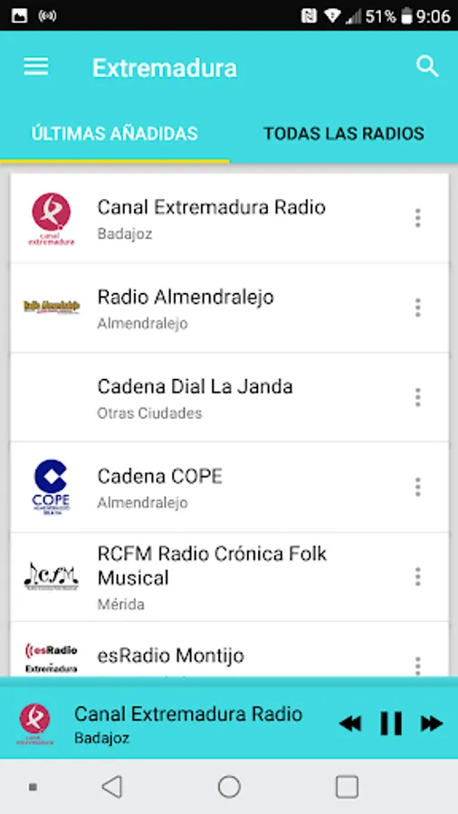 In the app: "Radio Extremadura" we have tried to add all the radios that broadcast in the Extremadura area. If you think a station is missing just send us an email.