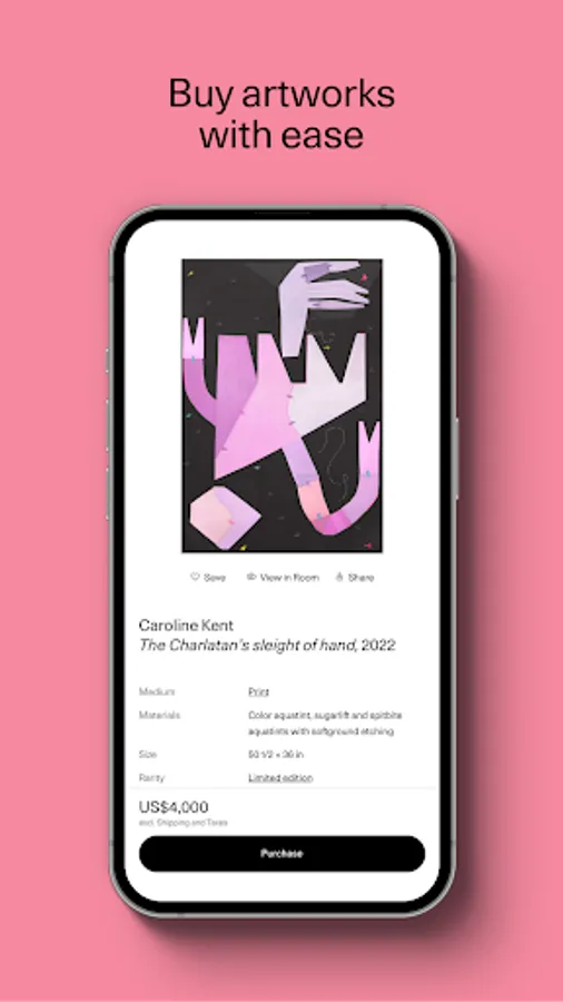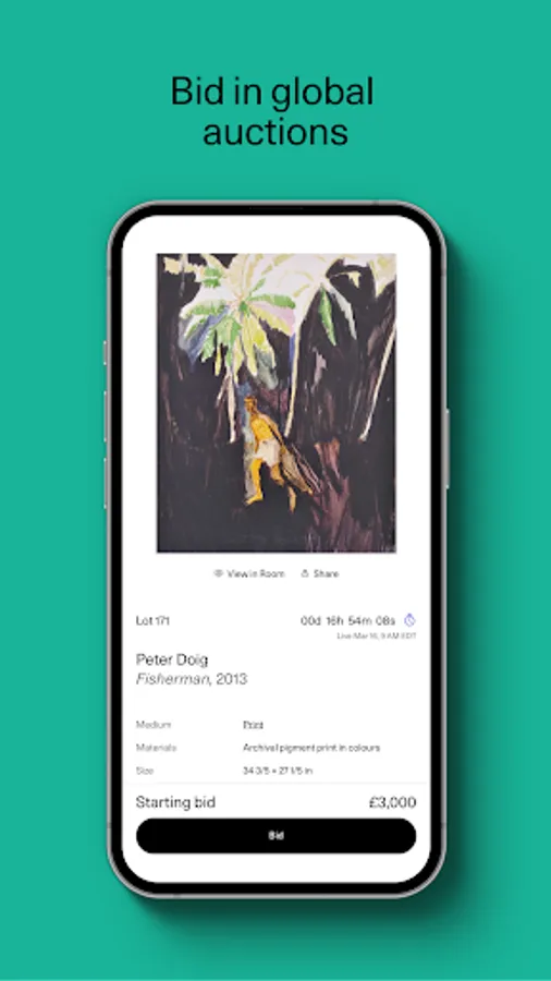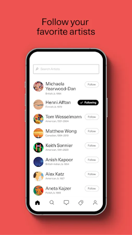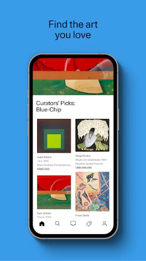 – In-app notifications alert you to new available artworks from artists you’re eyeing