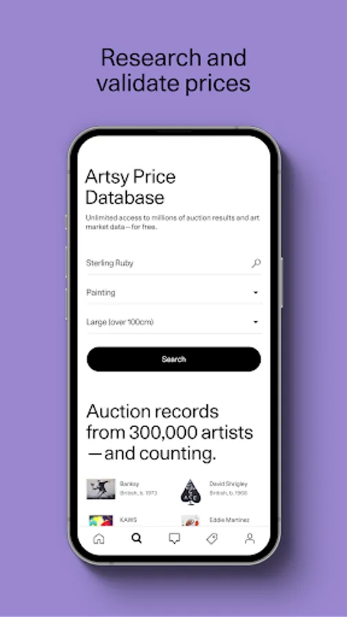 – Track auction results and art market signals to follow your favorite artists’ careers, right in the Artsy app