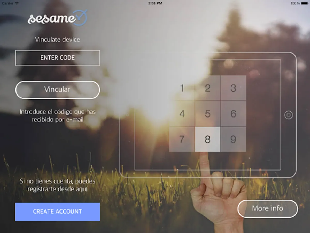 Sesame transforms any Tablet into a simple access point for employees where they can record each of the entries and exits that occur within the company. This record will provide us with relevant information that, at the same time, we will use in more detail in the mobile application for Smartphone. To carry out each registration, the employee must enter an access code that will have been provided by the company that will uniquely identify them.