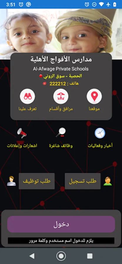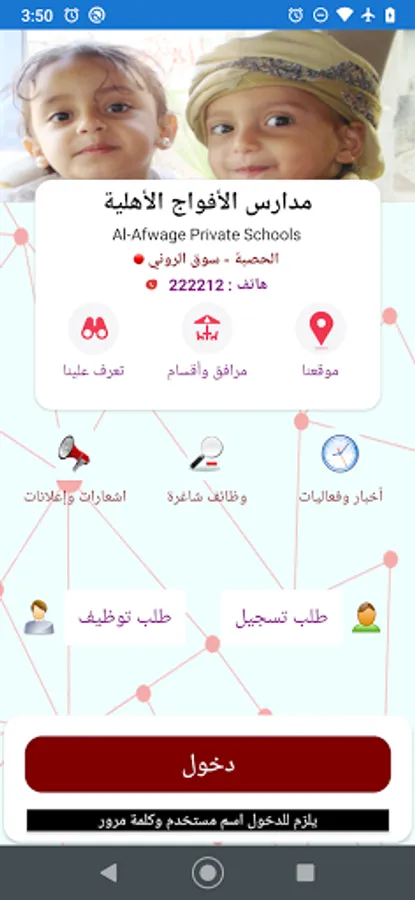 This application is for digital follow-up and electronic archiving of school day events and activities. And the means of communication between the school and the parents, is concerned with following up the student daily, recording and confirming the course of the school day and sharing it immediately with the parent. On the other hand, it aims to distribute the tasks among the teachers so that the load is reduced, the work is easier, and the tasks do not accumulate. Every teacher cares about his information, enters his data, and responds to his observations and inquiries easily. The application provides all the necessary operations for management, making statistics and comparisons, and facilitating access to information and access to data for those with access powers. Integrated management over the phone without the need for a computer or a website where all data is controlled and dealt with via the phone application. With the possibility of direct connection to the computer, of course. The application has been divided into levels so that the school determines the ambition that you want to reach, so a school may start only by recording lessons and duties, then after that you want to activate the next level until you reach the activation of the entire application to include all the processes from lessons and duties to reach the entry of grades, recording academic notes, behavioral and skill assessment of materials You can also activate chat and instant chat, or send video lessons and open discussion and interaction, or finally reach the interactive session remotely with audio and video .. and many other details and options as desired by the school.