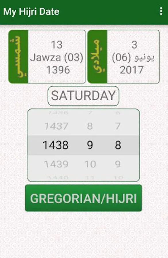 My Hijri Date useful app to display Hijri date and convert date from Gregorian to Hijri and vice versa and show Solar Hijri ( Shamsi) Calendar