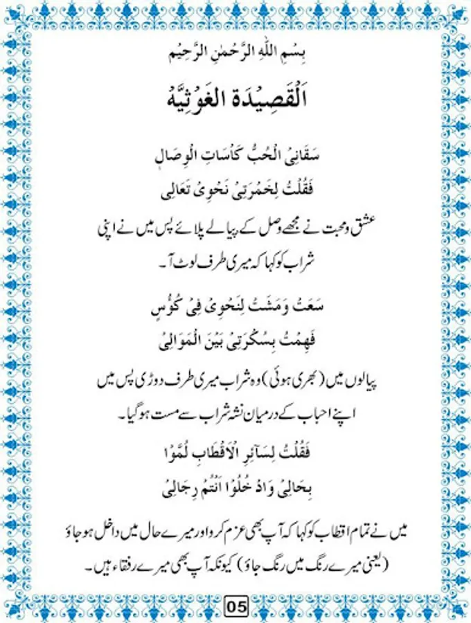 Qasdia e Ghousia Darasaal Hazrat Ghous ul Azam Syedna Sheikh Abdul Qadir Jilani RadiaAllahAnho Ki Zaban Se Niklay Hoay Alfaz Hain Jo Aik Khas Kaifiyat Tari Honay Per Zahir Hoay.