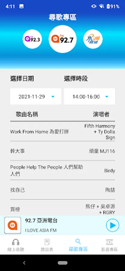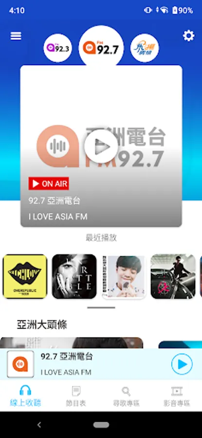 Popular classics double the main title "Asian Radio FM92.7", "Asian Radio FM92.3"