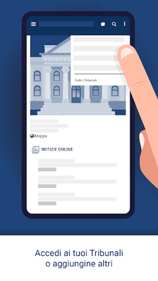 The Courts app allows you to select a Court and subsequently to consult all the news published by the judicial offices in real time, find forms, consult telephone numbers and interact with services aimed at citizens.