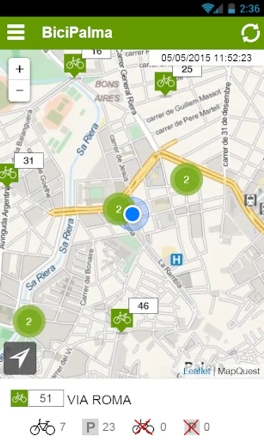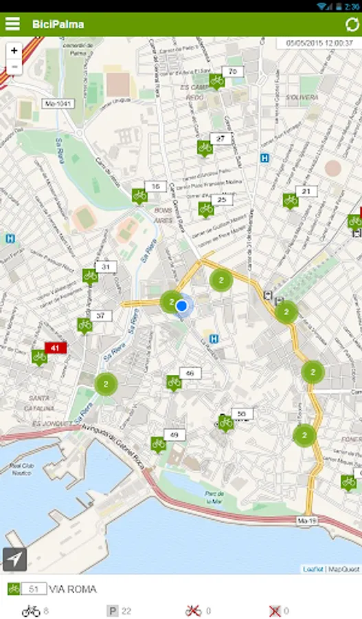 * [BiciPalma] Go to a BiciPalma bike station knowing in advance the number of available bikes and open anchor points, as well as any unusable ones.