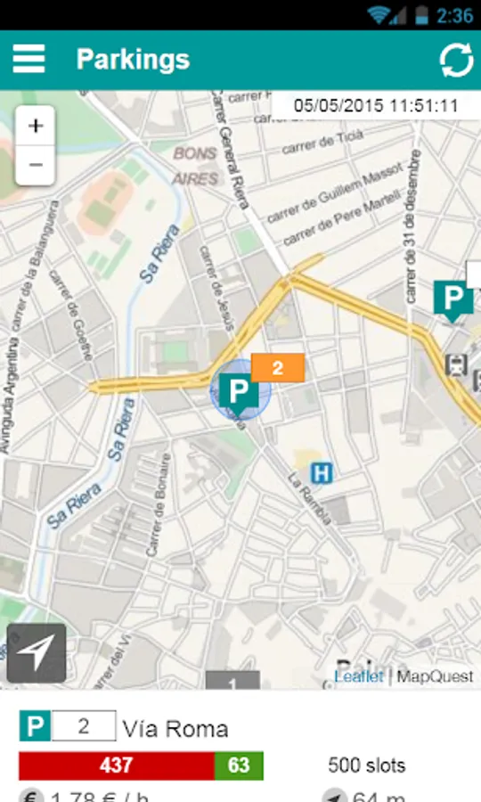 * [Parking] Go with your car to a car park knowing in advance the number of available slots and compare the price with other nearby parking options.