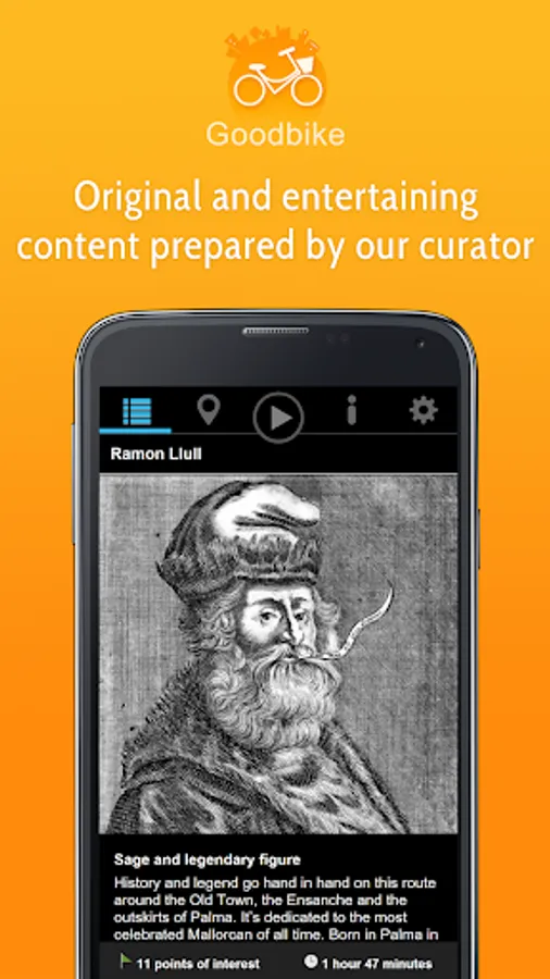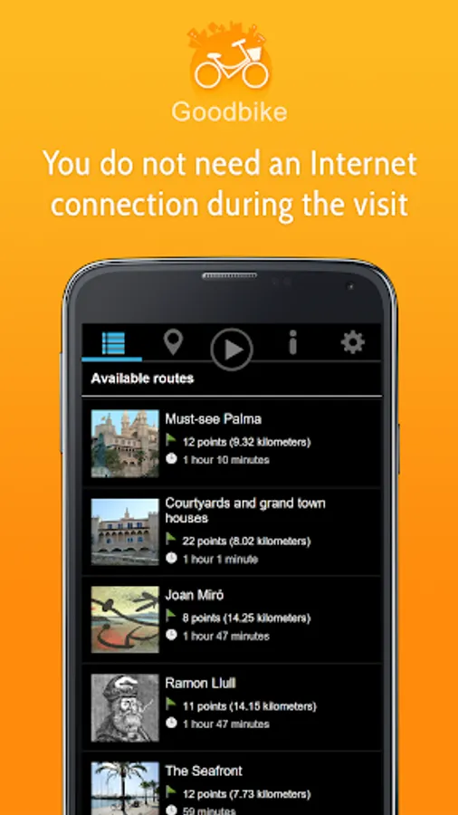 GoodBike Mallorca includes 5 different routes for the traveler interested in discovering those places where the touristic bus doesn't reach, and offers original and entertaining quality content on each and every one of the more than 50 points of interest included in the app.