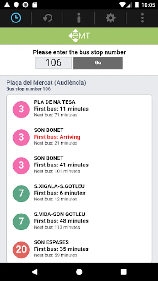 The official application from the Empresa Municipal de Transportes (Municipal Transport Company) from Palma de Majorca.