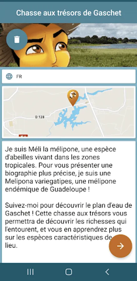 The second quest is located at the edge of the Gaschet pond, an artificial water reservoir which now houses many species full of life! You can observe birds, take to the skies to fly over the lake, or even discover fruits that you may not know.