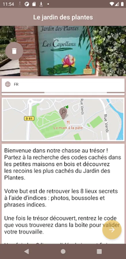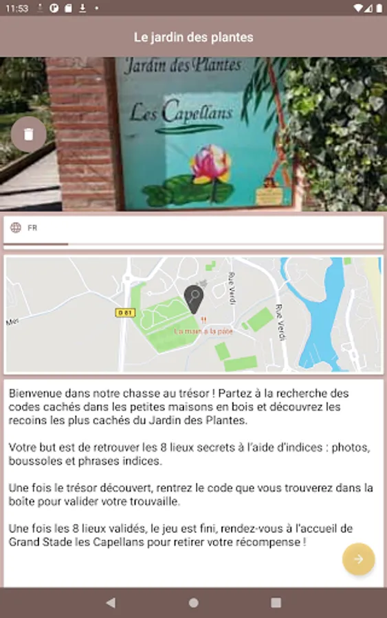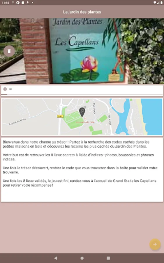 Application bringing together a treasure hunt in the Saint-Cyprien plant garden, as well as two photo hunting games in the Prade park and in the plant garden.