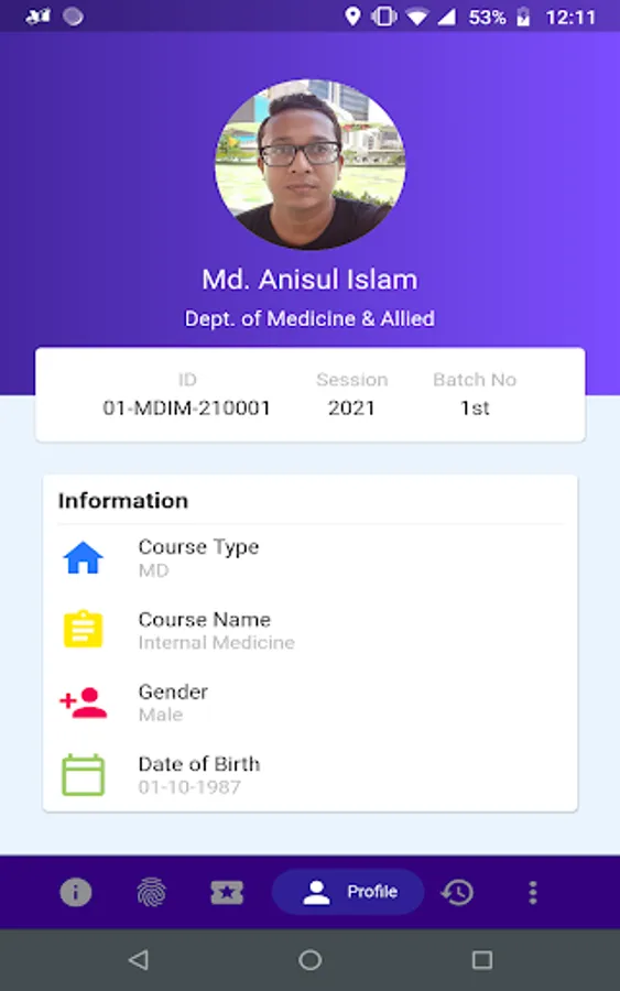 * Users can see their profile and summary of attendance