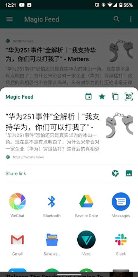 To help you master the web, Magic Feed can parse the title, description and pictures from a web link. And you can get a copy of well composed message to share a link by 1 single tap from the app.