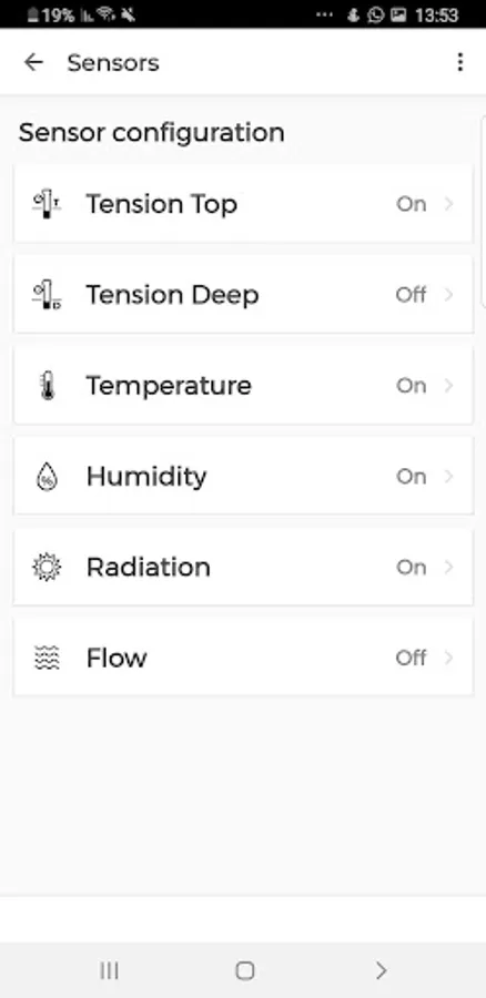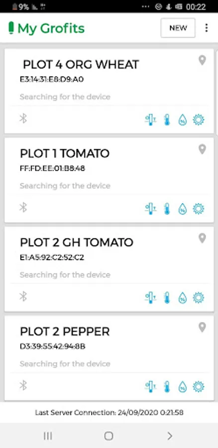 Grofit system is based on a sturdy, small, mobile, easy to install, battery-operated, easy to use, smart, and affordable IoT sensor device which collects up to 7 measured environmental parameters (temperature and humidity from air and soil, irradiation, water tension, and conductivity in the soil along with the GPS coordinates).